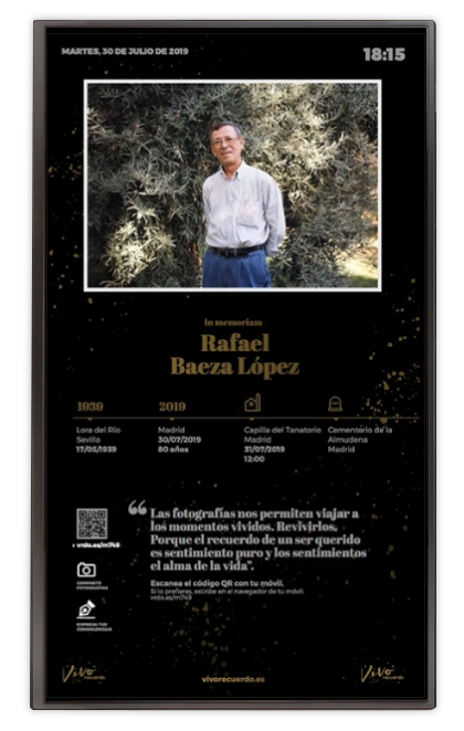 El Tanatorio Metropolitano de Granada pone a disposición de las familias un monitor profesional a la entrada de la capilla y de las salas velatorio para rendir homenaje al fallecido.